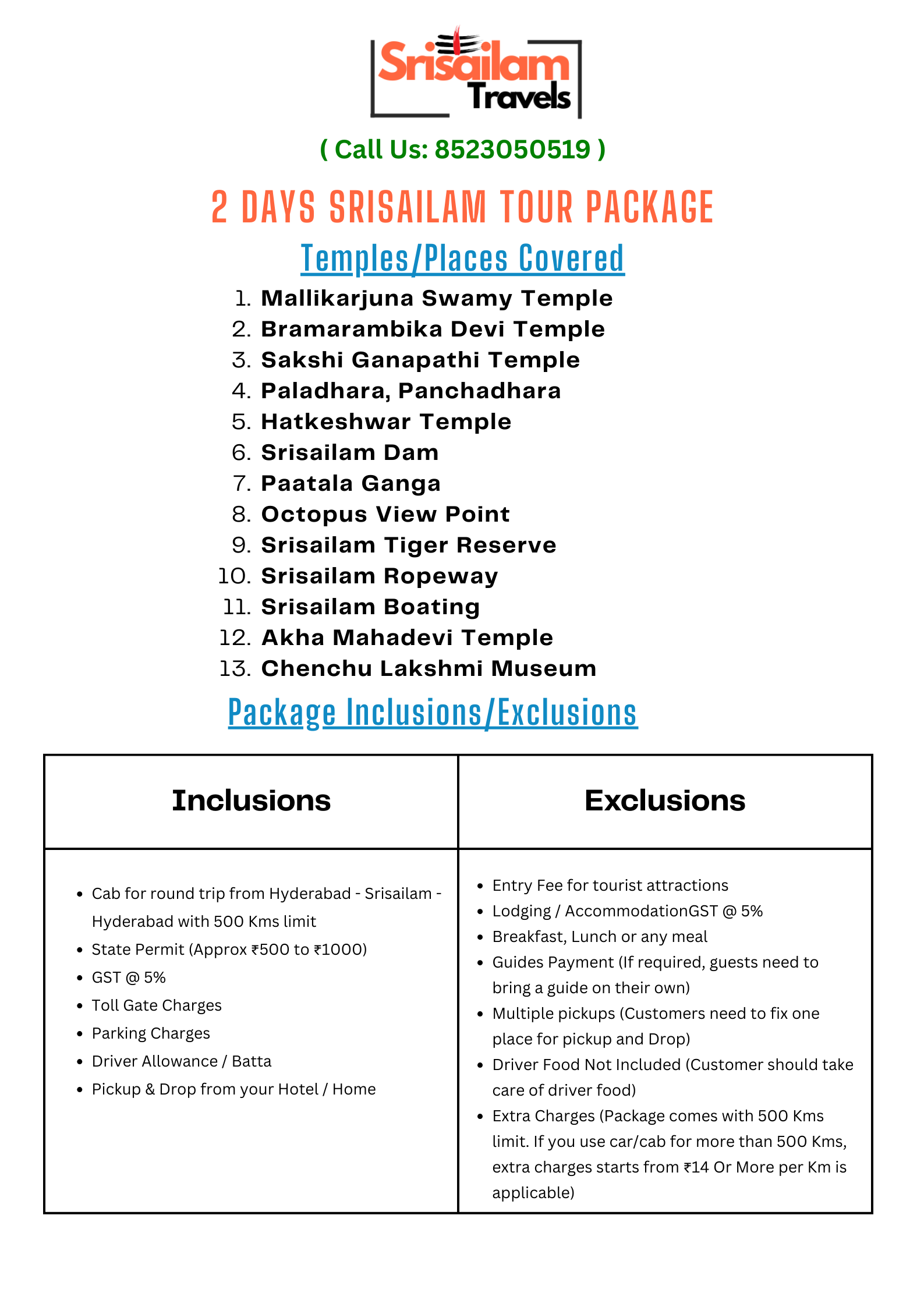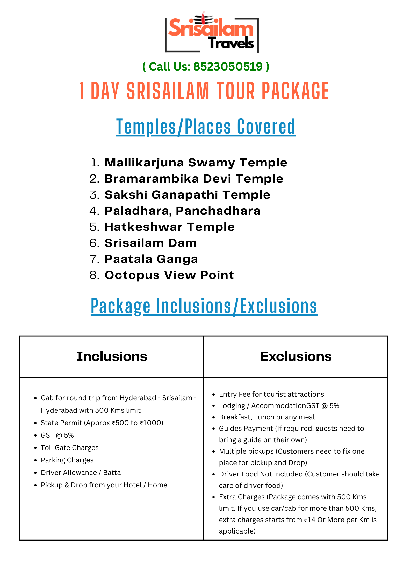 Our website is regularly updated with new and exciting seasonal offers and special tour packages, making it easy for customers to find the most relevant and cost-effective travel deals throughout the year. For personalized assistance, you can also reach out to our friendly customer care team at 8523050519, who will guide you through all available Hyderabad to Srisailam cab options and help you choose the ideal plan.